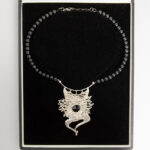 WUYTS J design collier, genaamd “L’éléphant”, in zilver met centraal een ovale cabochon (onyx ?) – gewicht (met ketting) : 88,3 gram – ca 1980 toegeschreven aan