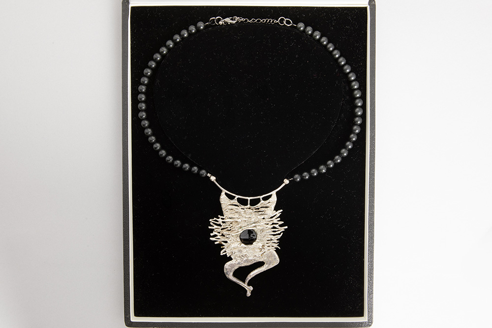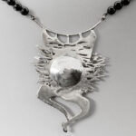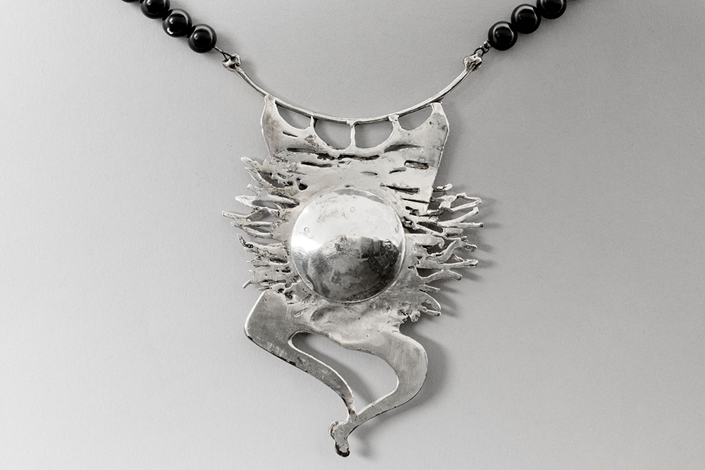 Belgian eighties’ design necklace in silver with an oval cabochon (in onyx ?) – attributed to J. Wuyts