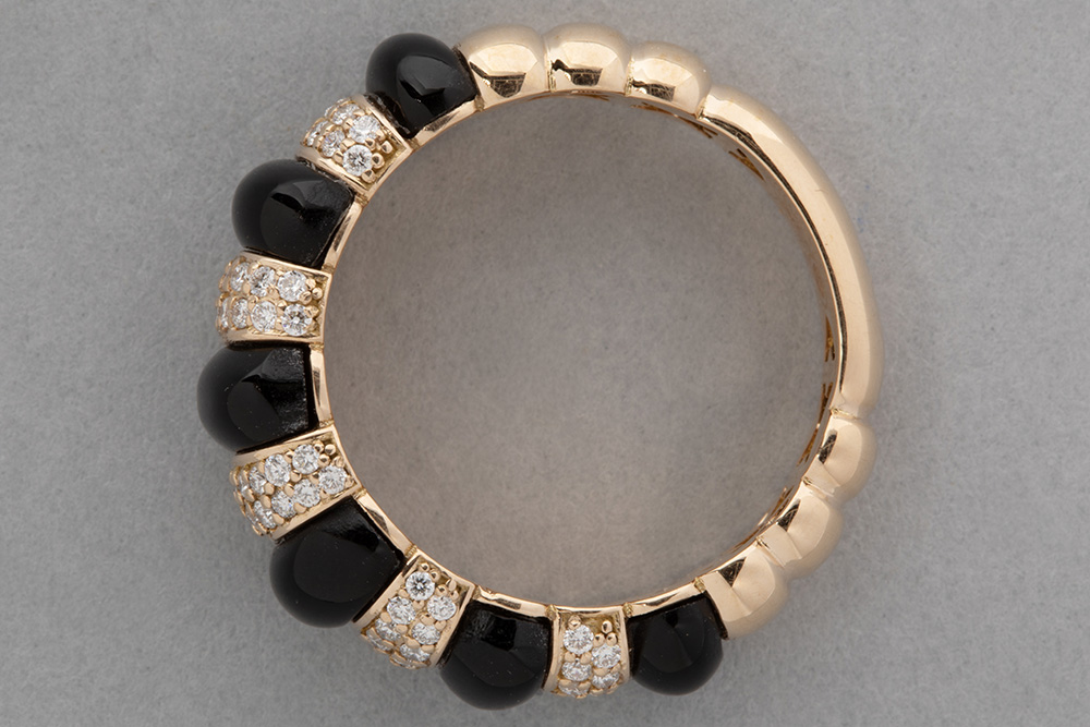 ring with a “Chaumet” style design in pink gold (18 carat) with onyx and high quality brilliant cut diamonds