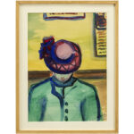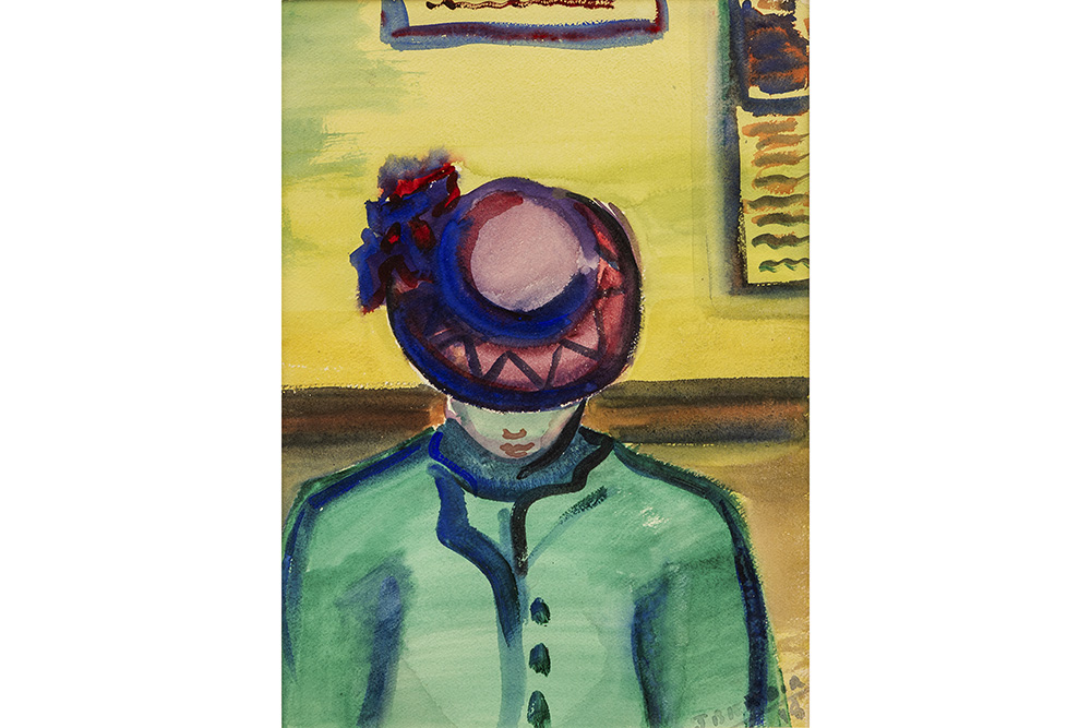 Lot van twee werken : een onleesbaar getekend aquarel met dame met hoed en een pastel van Jacques Malfait