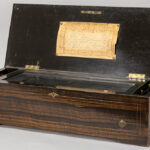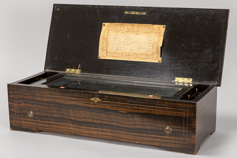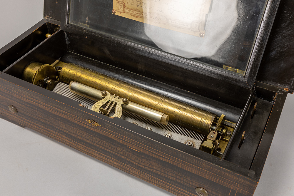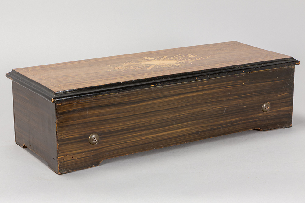 Negentiende eeuwse muziekdoos met kist in Napoleon III stijl, gerealiseerd in palissander met inlegwerk, en met werk met zes melodieën – 57,5 x 22,5 x 16 cm