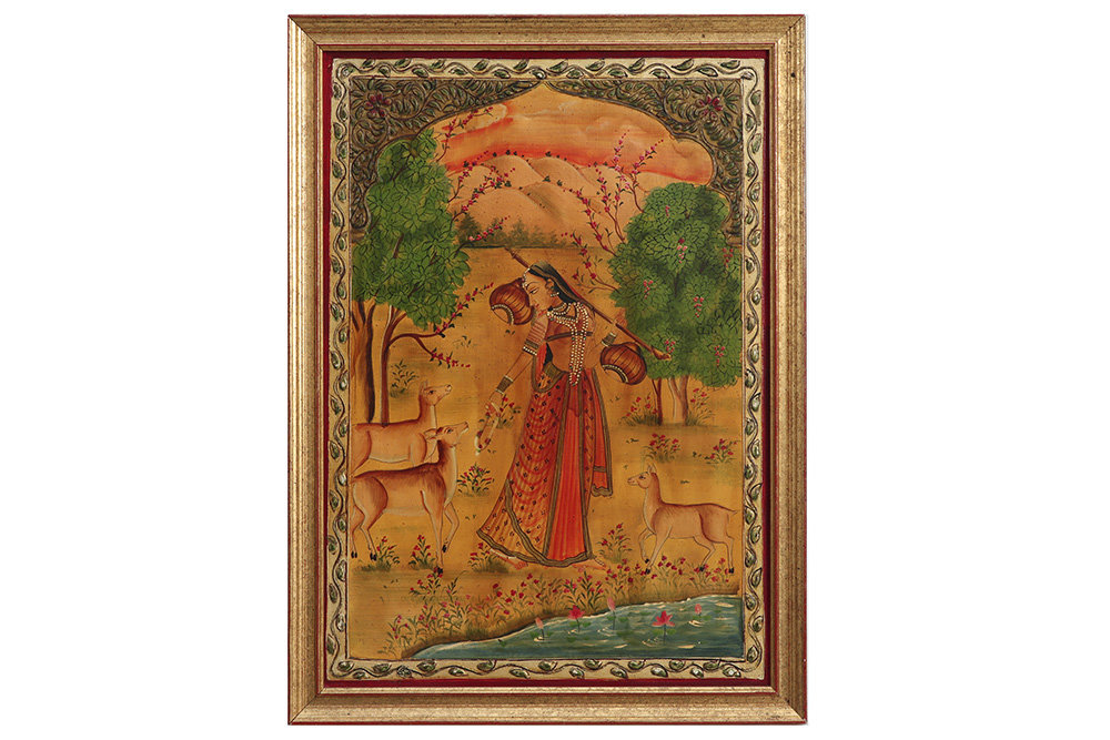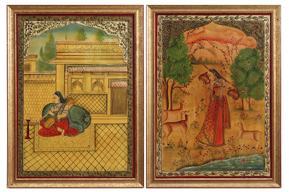 pair of Indian paintings with a lady