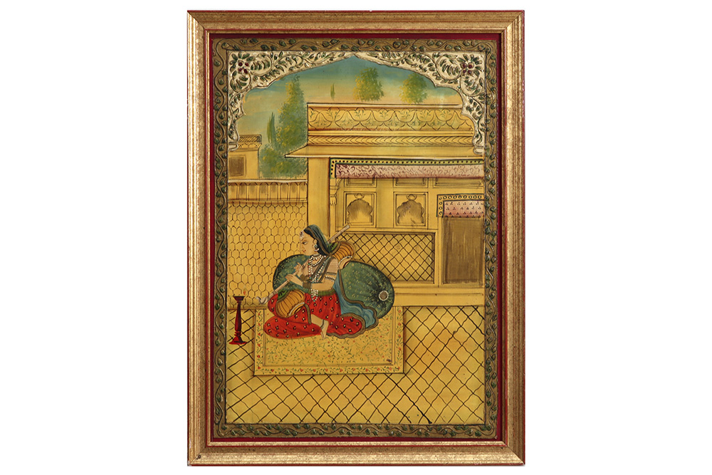 Paar Indische schilderijen op paneel telkens met een dame – 42 x 30