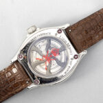 completely original Louis Moinet marked “Date Scope” automatic skeleton wristwatch in steel – with its box and certificate, with a small card from the Royal Court of Sultan Qaboos Bin Saïd and with on the back of the watch a seal of the Royal Court