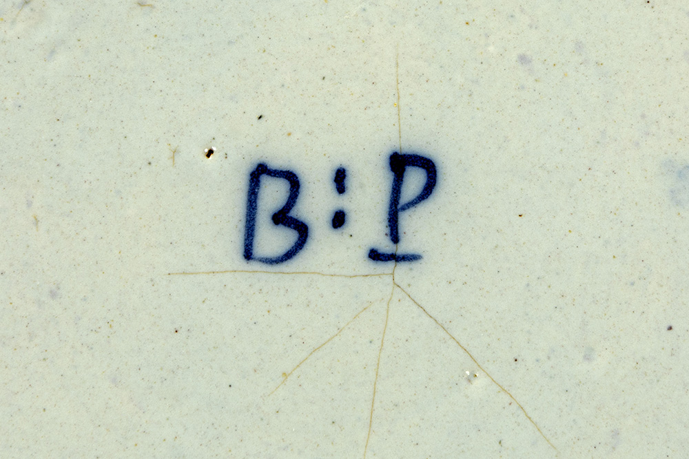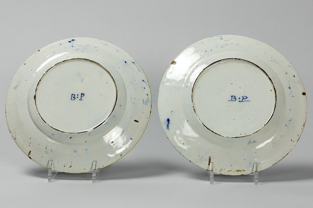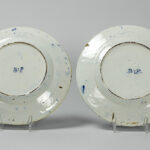 pair of 18th Cent. “B.P.” marked plates in ceramic from Delft with a blue-white decor