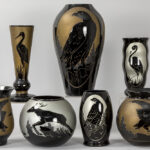 Lot met zeven Art Deco-vazen in Booms glas, waarvan enkele getekend (‘Artver’) en zes met vogel- en één met hertendecor – hoogtes van 22 tot 47 cm – ca 193040