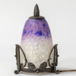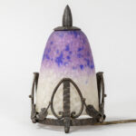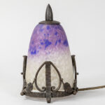 Schneider signed early Art Deco lamp with a beautiful stand in wrought iron and a pâte de verre shade
