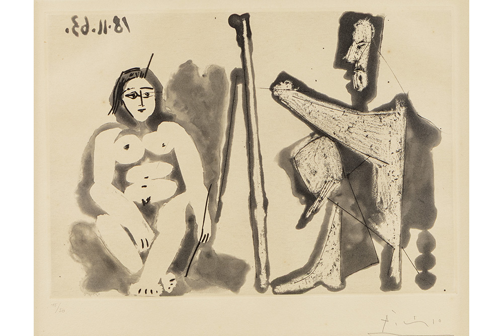 Pablo Picasso signed aquatint “Le peintre et son modèle” to be dated in 1963 – numbered 15/50 lit : Bloch 1130