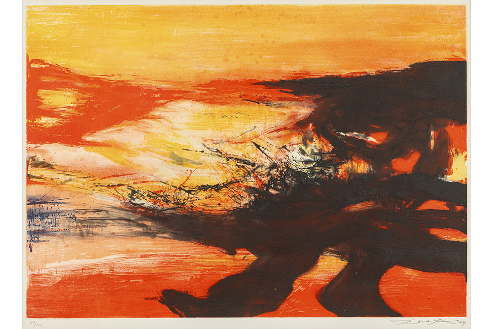 Zao Wou-Ki signed aquatint and etching in colors from the Nobel Prize portfolio (1974) – numbered 49/100 published by Galerie Börjeson, Malmö lit : Agerup 248