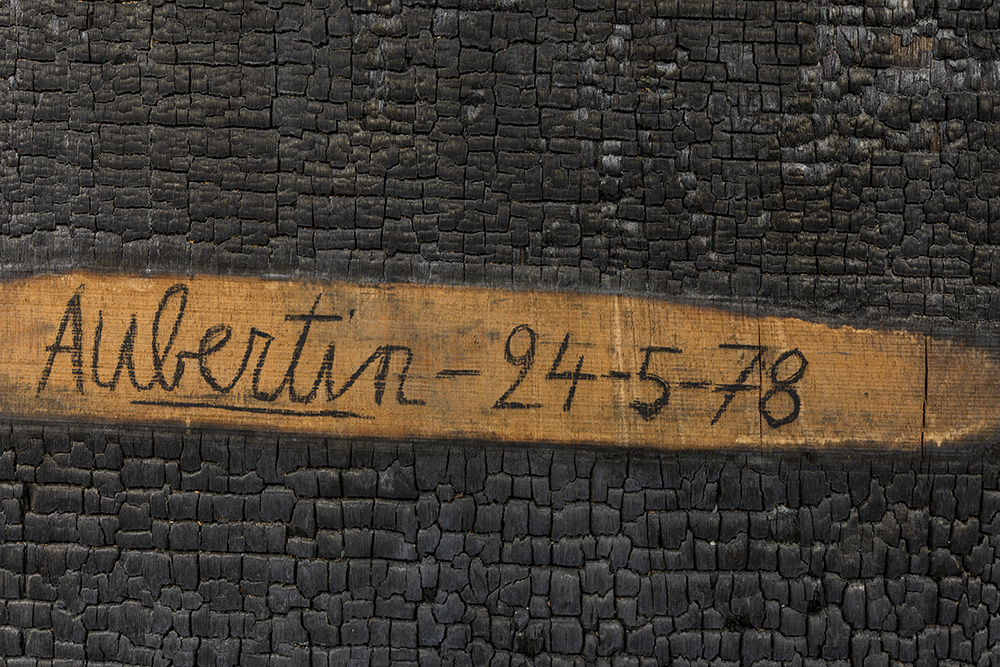 rare large, Bernard Aubertin signed and 24-5-(19)78 dated “Burned Painting” from the “Burnt Paintings” series prov : Gallery Swetec – Düsseldorf