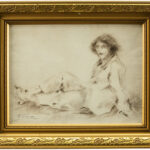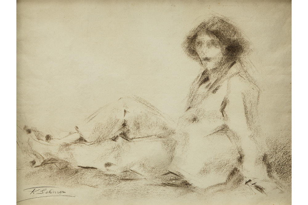 SCHIRREN FERDINAND (1872 – 1944) tekening : “Zittende jonge vrouw” – 29 x 38,5 getekend