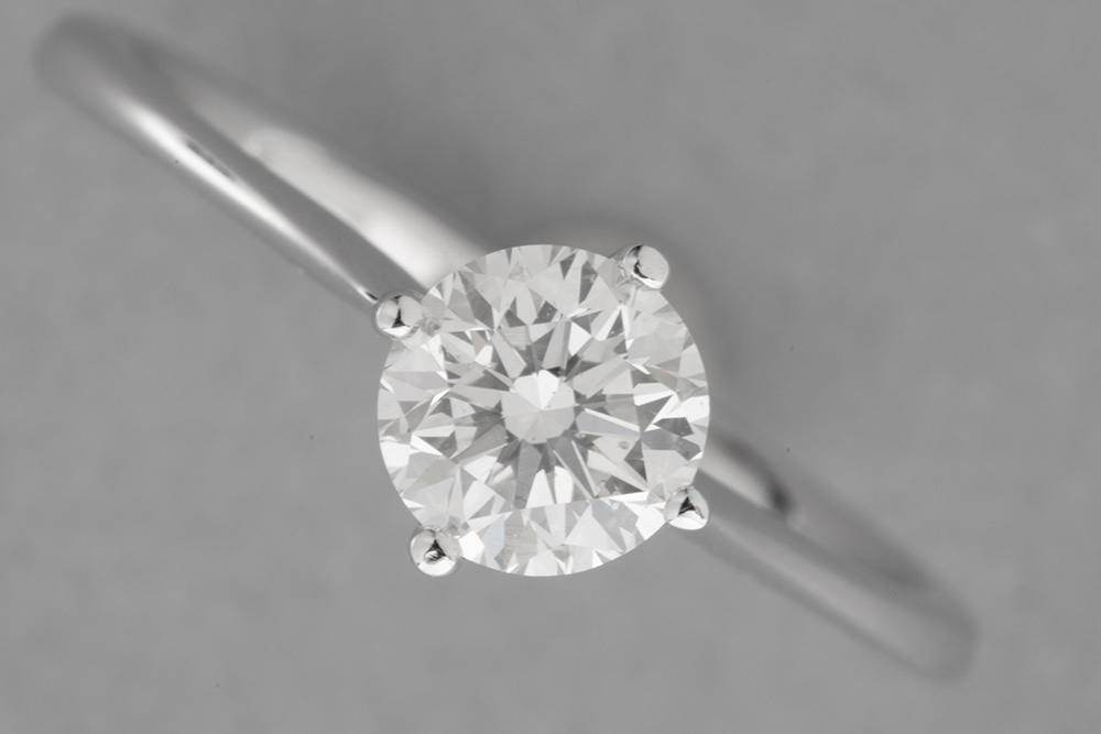 a 0,90 carat quality brilliant cut diamond set in a classic ring in white gold (18 carat)