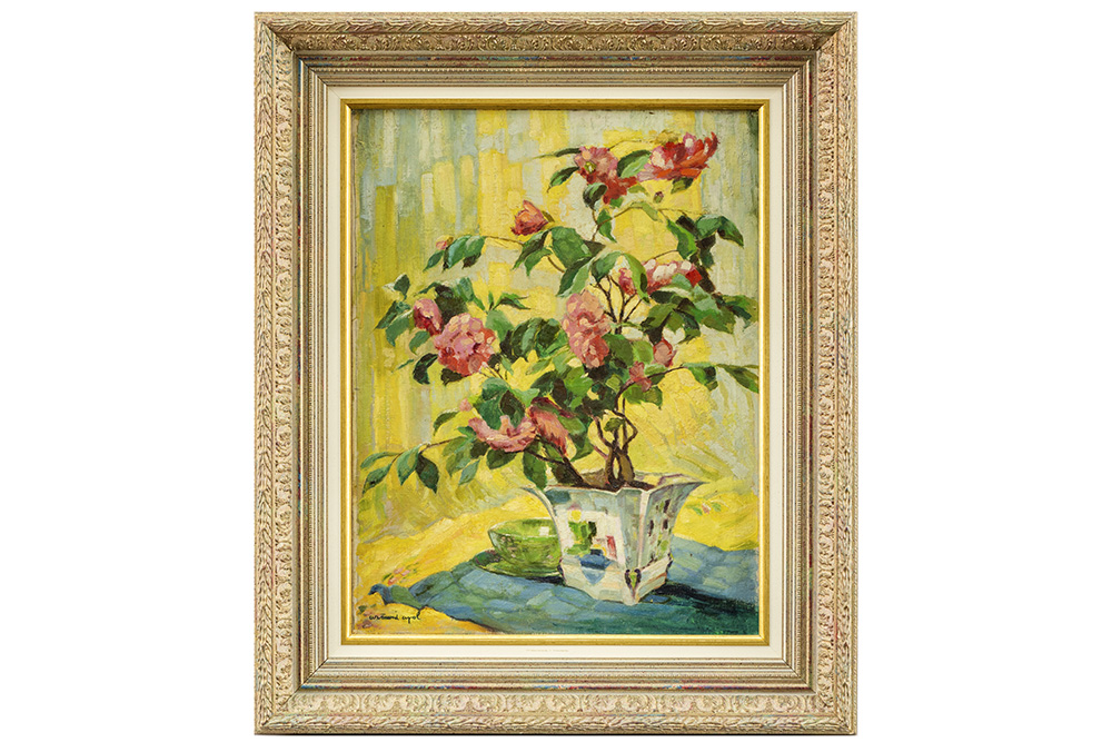 APOL ARMAND (1879 – 1950) olieverfschilderij op doek : “Stilleven met bloempot” – 50 x 38 getekend