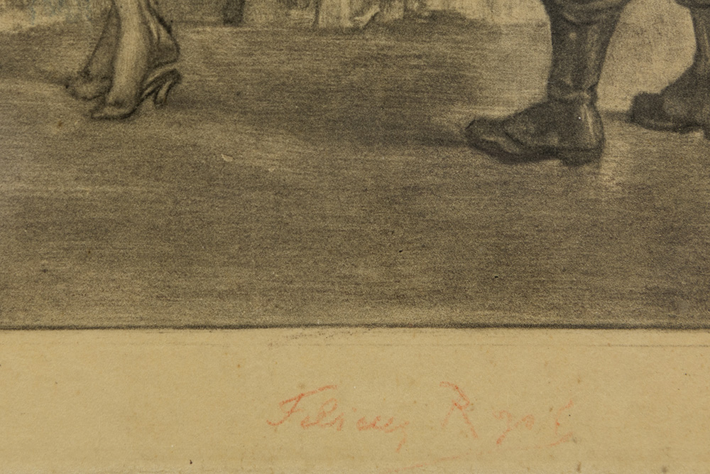 ROPS FELICIEN (1833 – 1898) opgehoogde ets : “Soldaat met vrouwelijk naakt” – 20,5 x 14 getekend
