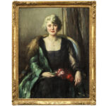 TOUSSAINT FERNAND (1873 – 1956) olieverfschilderij op doek : “Portret van een zittende dame met bloemenboeket op de schoot” – 113 x 88 getekend