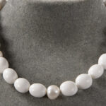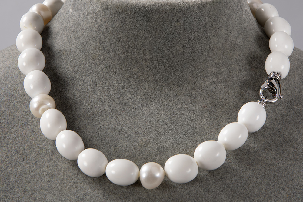 Belgian “Tresoro” necklace with pearls and white beads and with a lock in white gold (18 carat)
