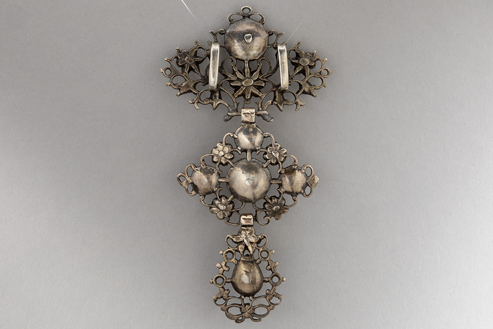 antique, presumably Flemish, pendant in silver and gold with rose cut diamonds