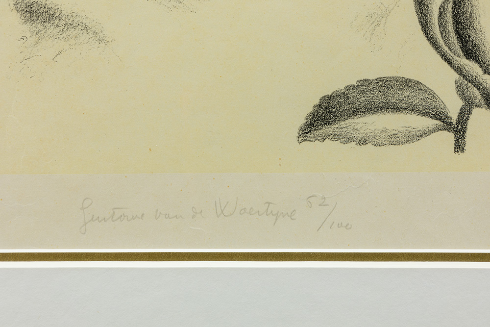VAN DE WOESTIJNE GUSTAVE (1881 – 1947) litho n° 52/100 met een typische compositie dd 1924 – 38 x 49 getekend in en buiten de plaat
