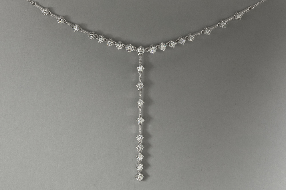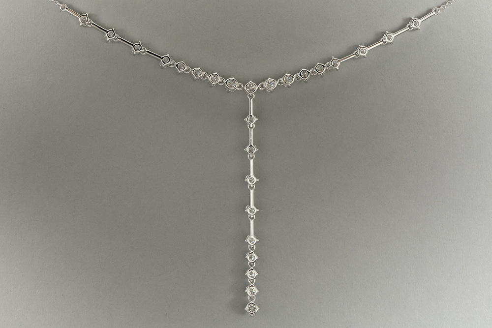 elegant and fashionable necklace in white gold (18 carat) with ca 2,30 carat of high quality brilliant cut diamonds