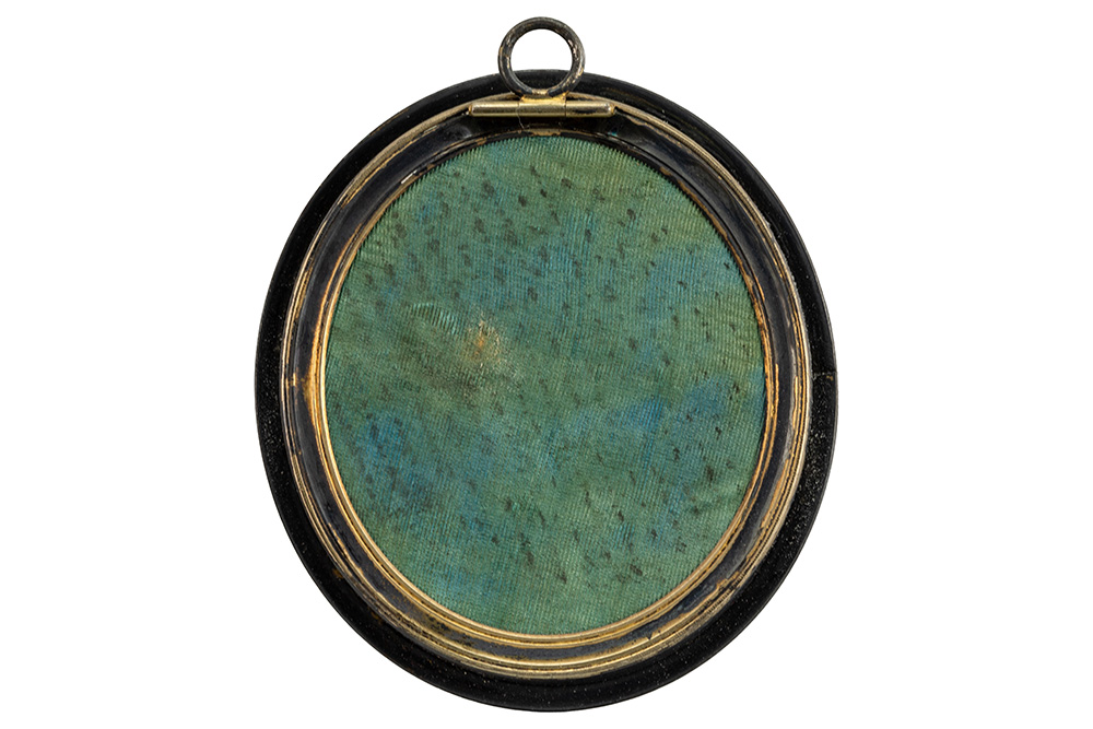 Lot van twee antieke miniaturen : een portret van een jonge man, getekend Louis-Marie Autissier (1772 – 1830) en gedateerd Paris 1819 & één van een jonge dame (in medaillon) – 6,7 x 5,2 en 5 x 4,3
