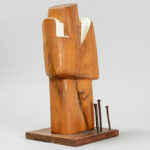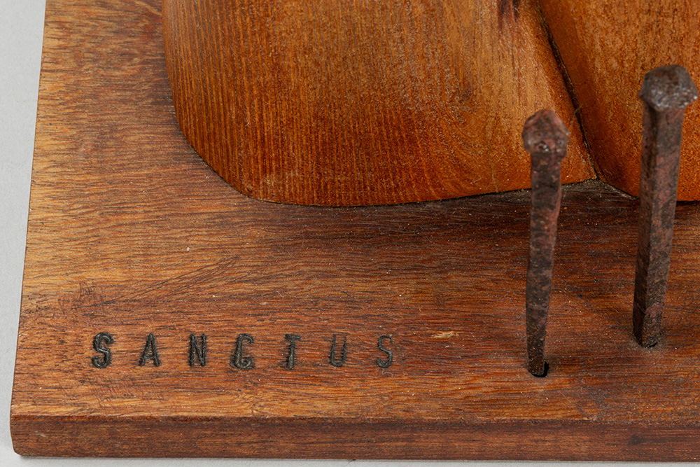 VAN DEN BOSCH JEF (° 1942) 20/21° eeuwse sculptuur in hout met olieverf en spijkers getiteld “Sanctos” – hoogte : 39,5 cm gemonogrammeerd