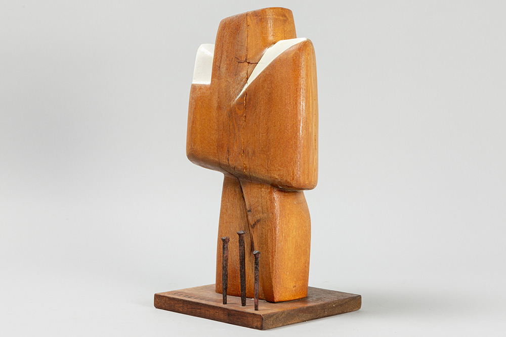 20th Cent. Belgian sculpture in wood with oilpaint and nails – with the monogram of Jef Van den Bosch