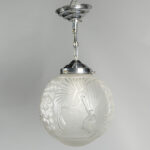Müller frêres Lunéville signed Art Deco chandelier in satinated glass with typical bird’s decor