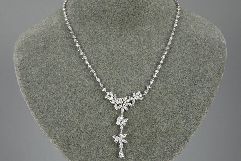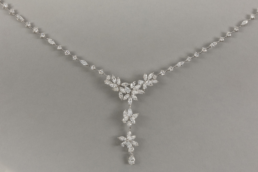 very elegant necklace with in white gold (18 carat) with 8,10 carat of top quality marquise and brilliant cut CVD diamonds
