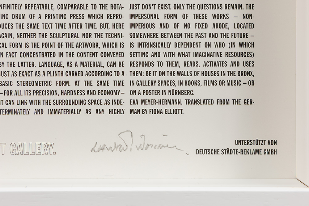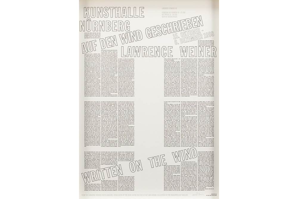 Lawrence Weiner handsigned poster for the exhibition “Auf den Wind geschrieben/Written on the Wind” dd 1998