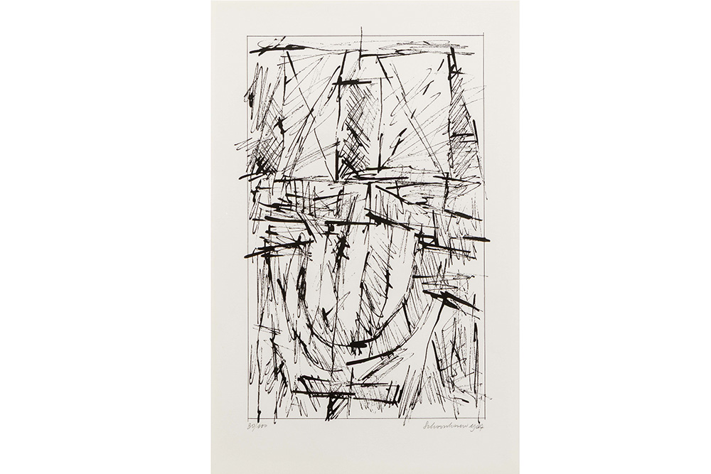 SCHOONHOVEN JAN (1914 – 1994) zeefdruk n° 30/100 met een abstracte compositie – 49 x 32 getekend en gedateerd 1987