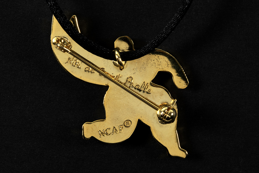 Niki de St-Phalle “Nana” pendent/brooch in gilded metal and enamel to be dated around 2000 – with engraved signature edition by NCAF