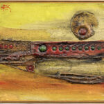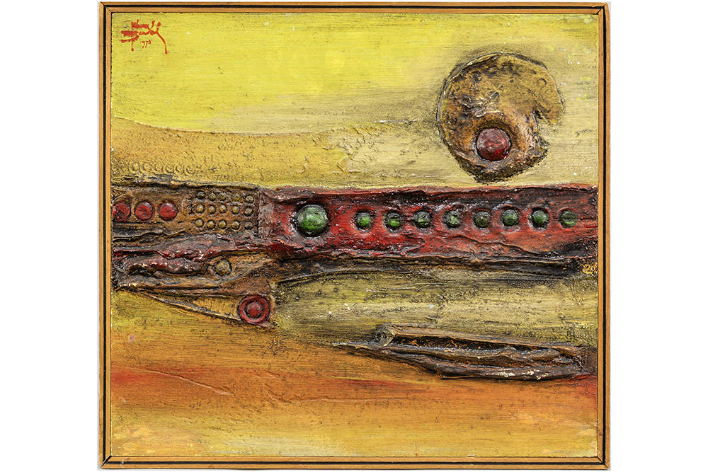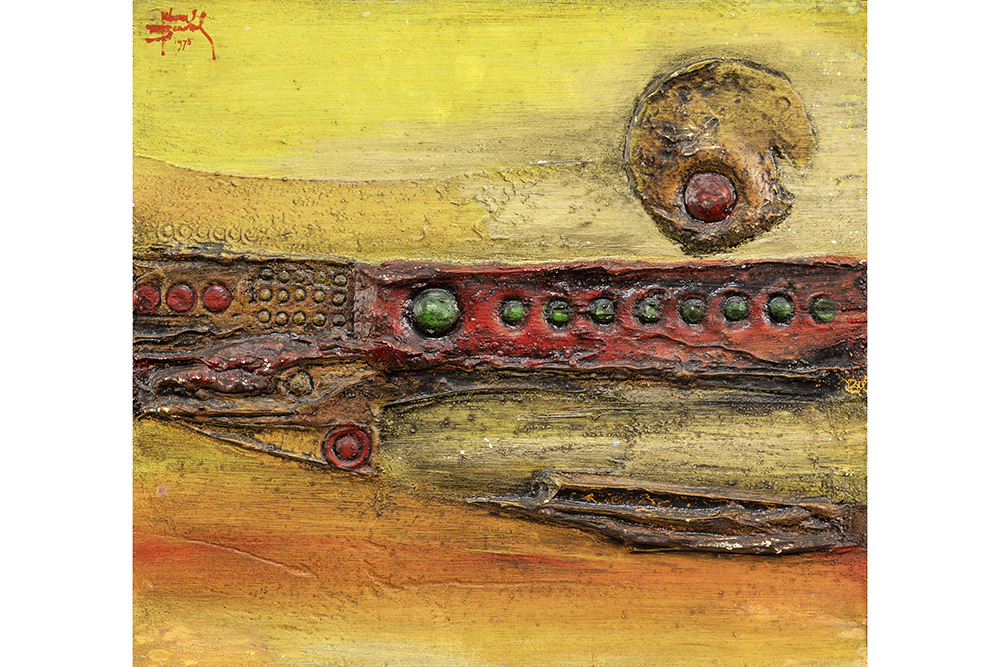 VELKOV IVAN (1930 – 2008) twee olieverfschilderijen op paneel met een abstracte 70’s compositie – 24 x 40 en 38 x 41 getekend en gedateerd 1975 en 1973