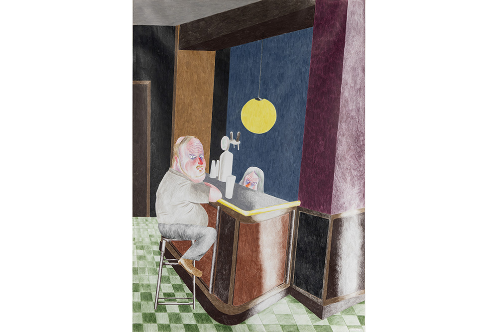 TYFUS DENNIS (° 1979) kleurpotloodtekening getiteld : “We are closed” – 99 x 69,5 getekend en gedateerd 2017 afgebeeld in de monografie “Dennis Tyfus” op p. 194, uitgegeven door Tim Van Laere Gallery & Hannibal books, 2023