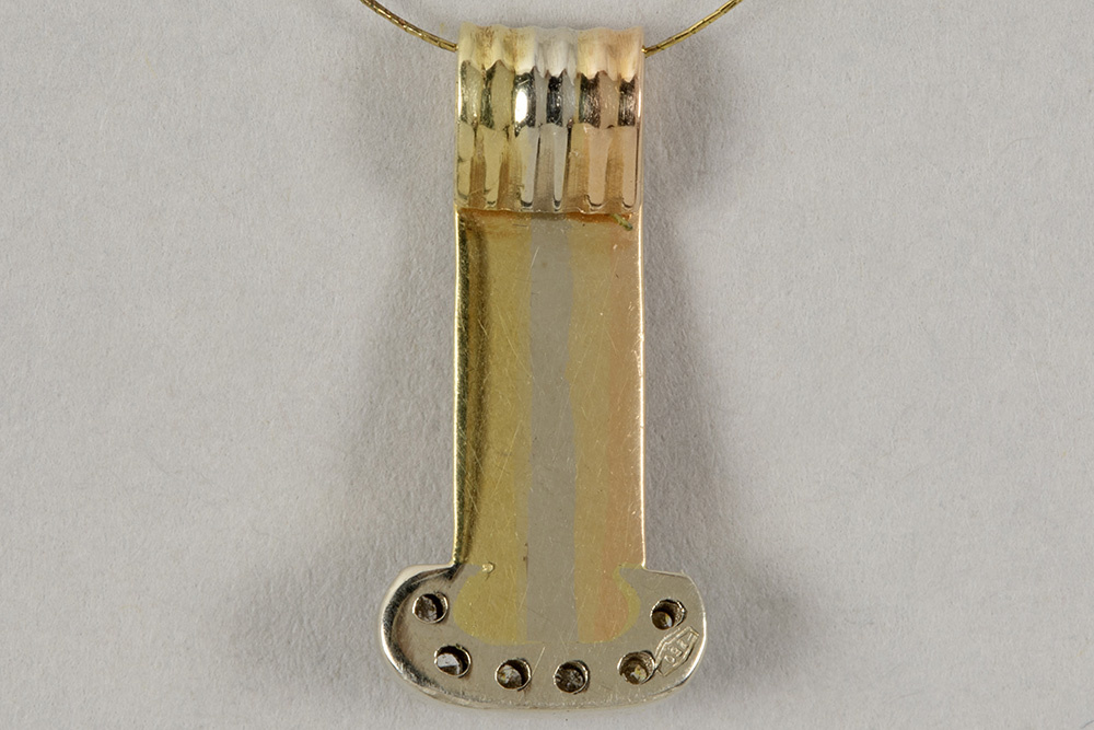 Kleine pendatief in Cartier-stijl in roos, geel en witgoud (18 karaat) bezet met kleine kwaliteitsbriljant – gewicht : 1,9 gram