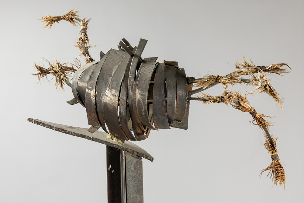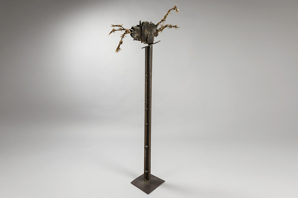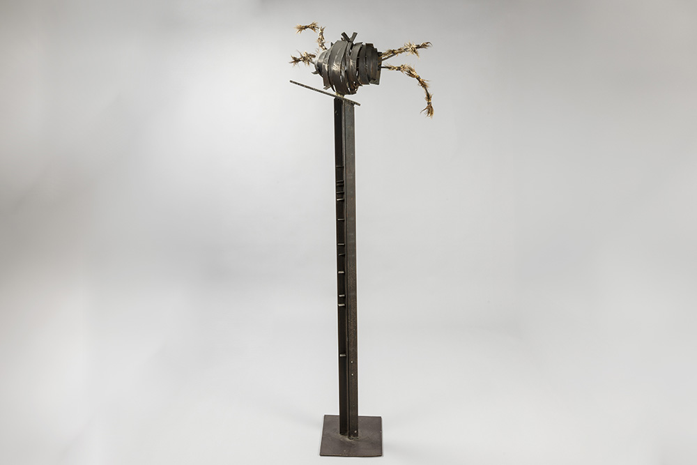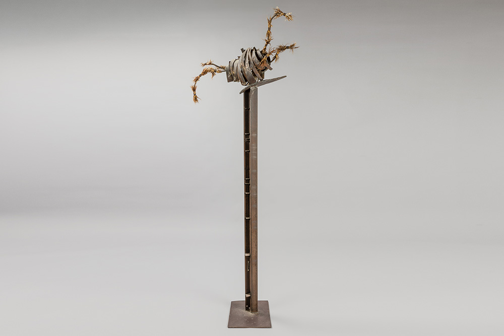 MERTENS VIVIANNE assemblage sculptuur – hoogte : 186 cm afgebeeld in catalogus “Streekgerechten deel 5 Vivianne Mertens” dd 2001 met een bevestiging per mail van de kunstenares