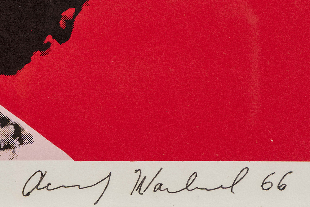 WARHOL ANDY (1928 – 1987) litho in kleuren : “Liz (Taylor)” – 55,4 x 55,4 (afbeelding) en 58,4 x 58,4 (blad) getekend en gedateerd 1966 uitgave op ca. 300 exemplaren, met een ongekend aantal getekende geprint door Total Color, New York uitgegeven door Leo Castelli Gallery, New York prov : private collectie, Zwitserland