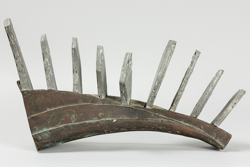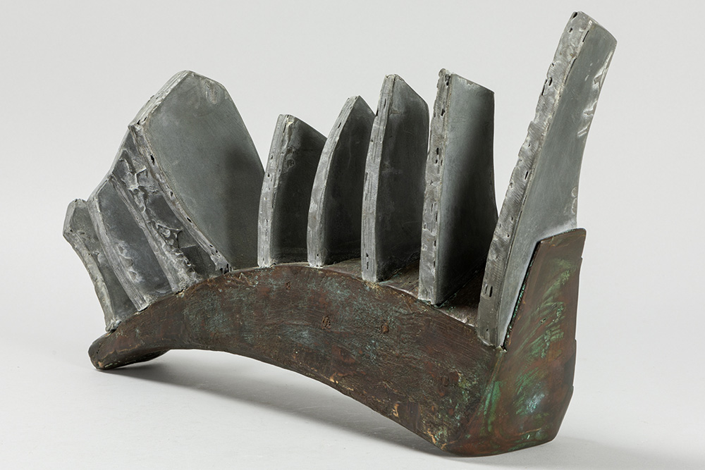 DECQ BART (° 1958) sculptuur in zink en brons : “Abstracte compositie” – hoogte en breedte : 28 en 54 cm