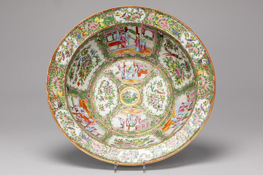 Negentiende eeuws Chinees bekken in porselein met een typisch Cantonees decor – diameter : 40,6 cm