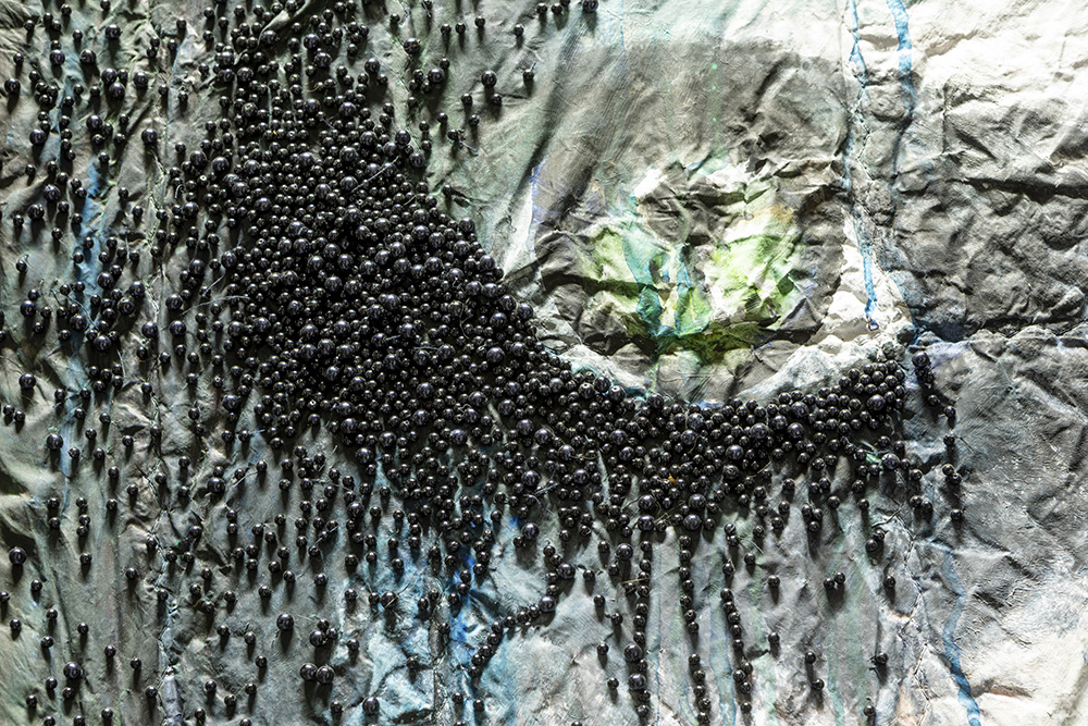 NIJS KATRIEN (° 1976) werk in gemengde techniek op textiel – ca 203 x 118