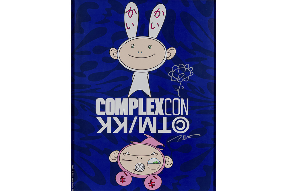Takashi Murakami signed silver felt pen “Flower” drawing on a publication about the “Complexcon” exhibition at Long Beach (USA)