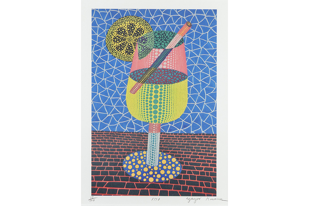 YAYOI KUSAMA (° 1929) zeefdruk in kleur n° 22/100 : “Cocktail” – 38,5 x 28 getekend en gedateerd 1999
