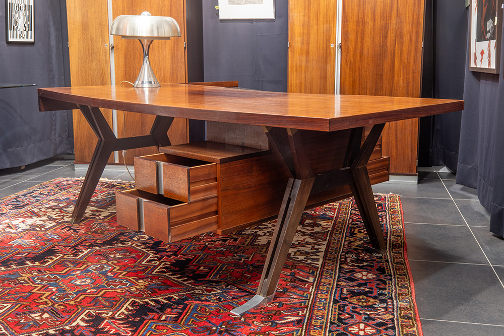 Ico Parisi marked “Terni” design desk in rosewood made by ‘Mim Roma’
