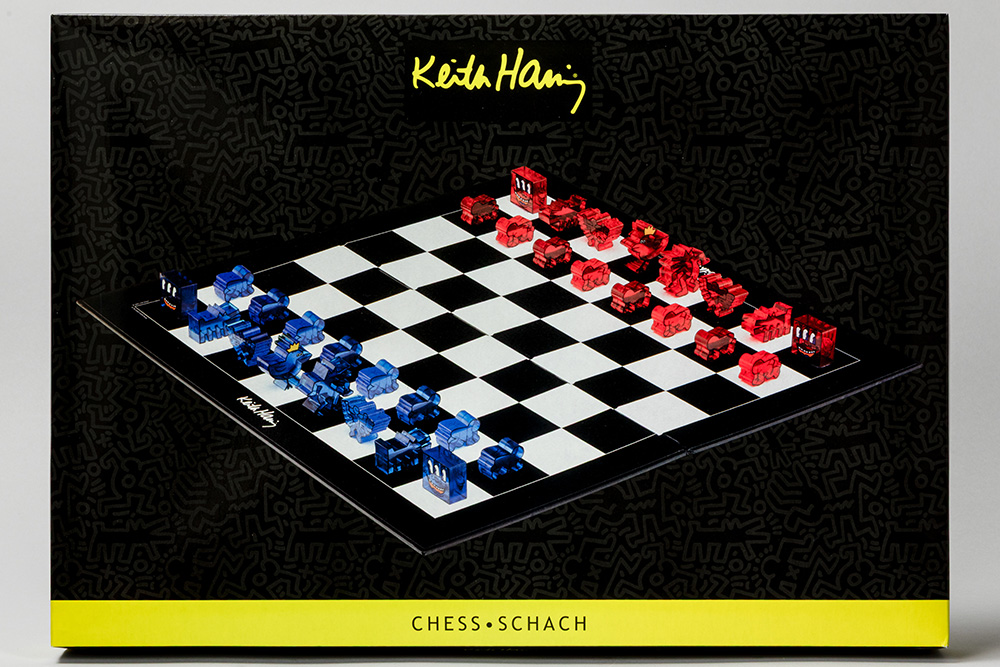 rare Keith Haring collectable “Keith Haring Chess” with pieces all in acrylic based on iconic works by Haring. Licensed by ArtMerchandising & Media AG, The Estate of Keith Haring