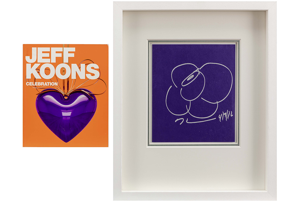 Jeff Koons signed and 4/9/12 dated drawing on a page of the book “Celebrations” sold with the book