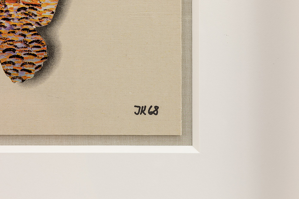 KOLLAR JIRI (1914 – 2002) origineel werk met een collage met prints van vlinders, gebaseerd op het werk “Terrasse du café le soir” dd 1888 van Van Gogh – 30 x 23,5 gemonogrammeerd