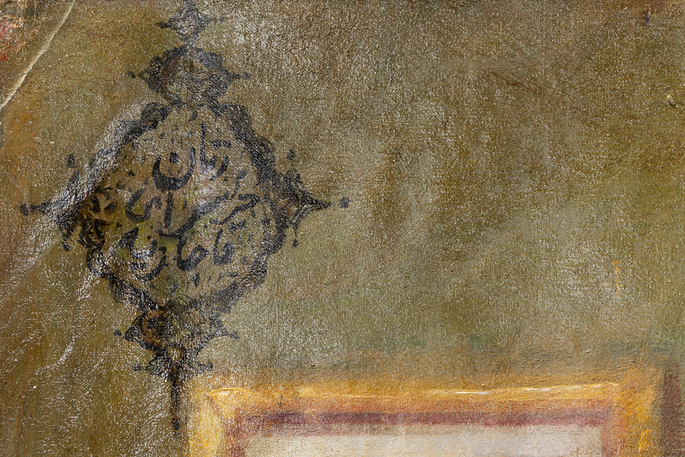 20ste eeuws olieverfschilderij op doek in Qajar stijl met de voorstelling van zittende vrouwen – 61,5 x 88