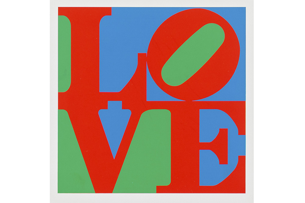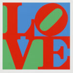 ROBERT INDIANA (1928 – 2018) zeefdruk in kleuren, eigenlijk een speciale proefdruk voor “LOVE” – 20 x 20 op verso getekend en met ‘Love’ tekening
