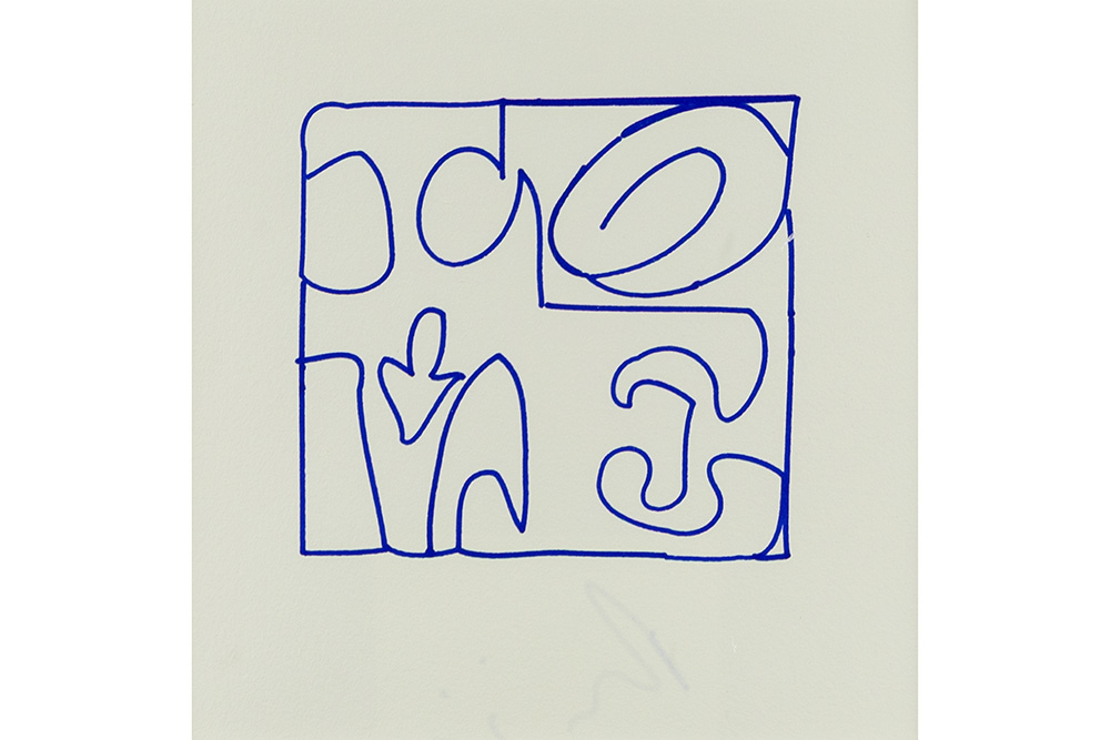 ROBERT INDIANA (1928 – 2018) originele tekening (ontwerp) in blauwe viltstift voor “LOVE” – 27 x 27 op verso getekend en met ‘Love’ tekening prov : nalatenschap R. Indiana