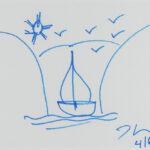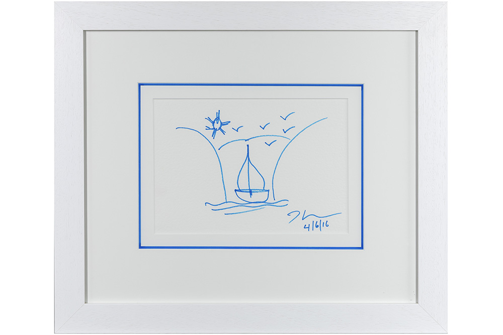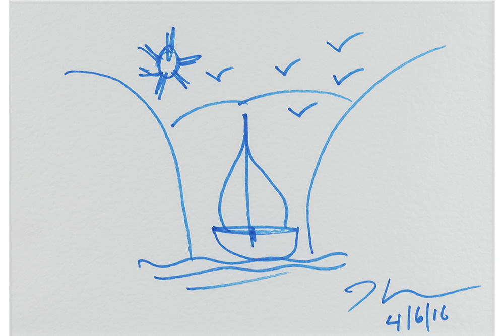 KOONS JEFF (° 1955) tekening in viltstift : “Zeilboot” – 30 x 21 getekend en gedateerd 4/6/16