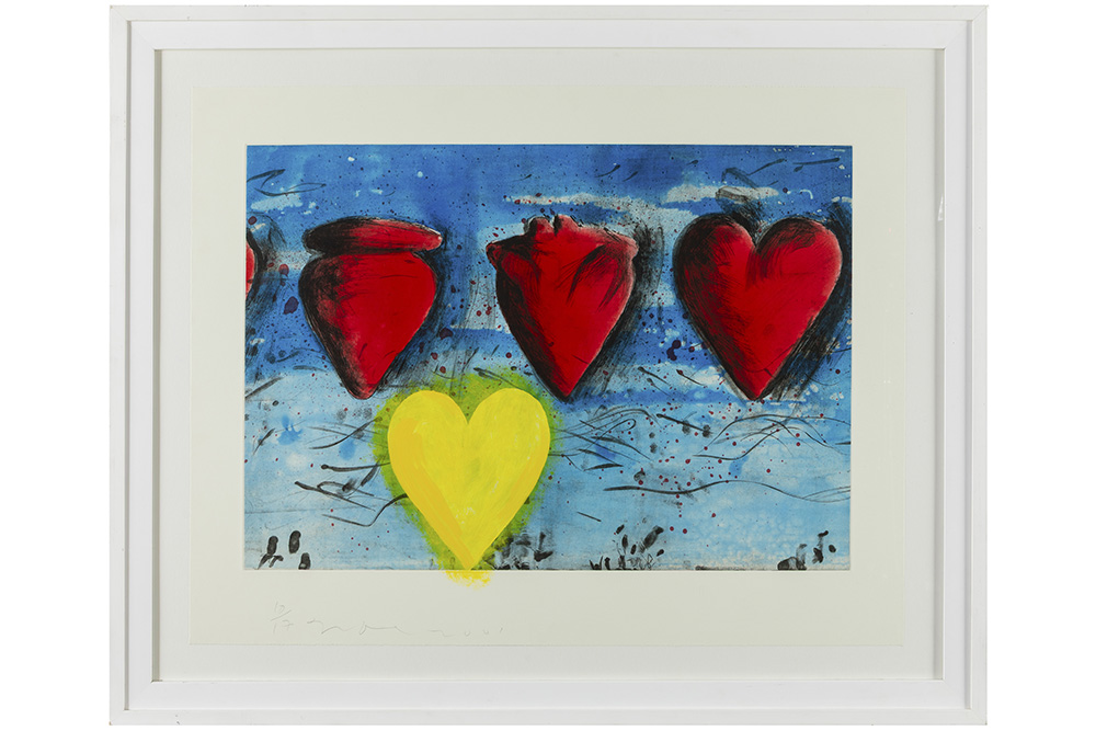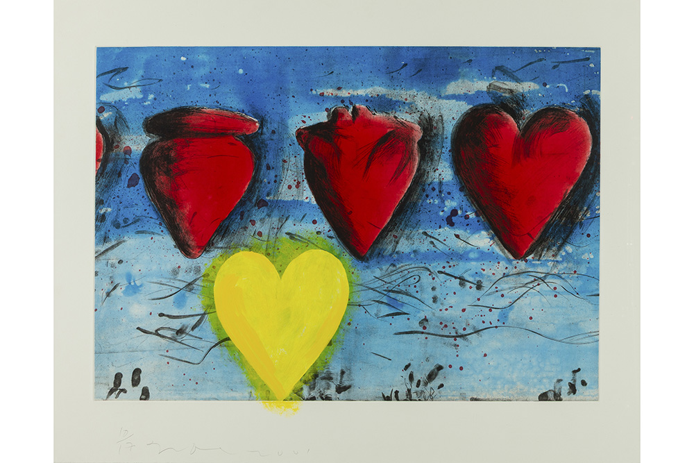 DINE JIM (° 1935) met de hand bijgekleurde aquatint n° 10/17 : “Yolk” – 71 x 91 getekend en gedateerd 2001 uitgegeven door Pace Editions, New York